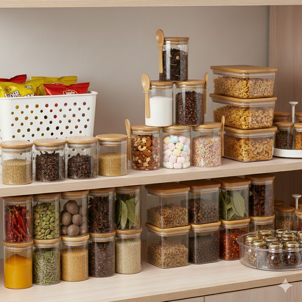 Large Premium Airtight Glass Jar with Bamboo Lid & Spoon – 500ml Multipurpose Kitchen Storage Container