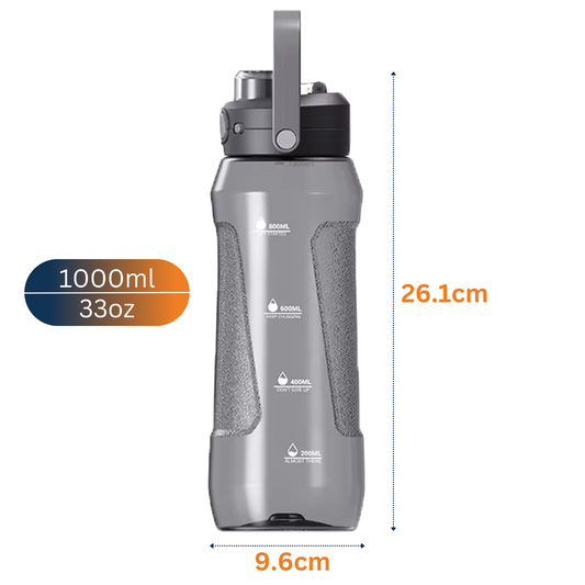 CLEARLOK Sport Grip School/Office Water Bottle - Black, 1000 ml