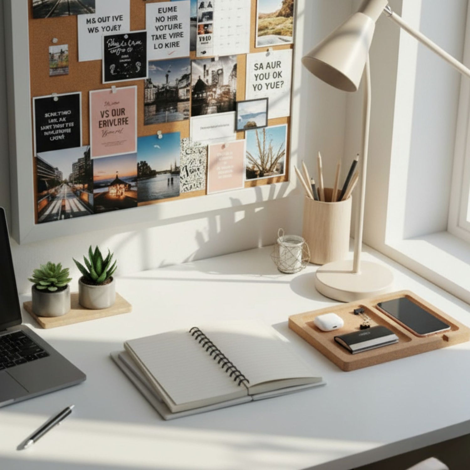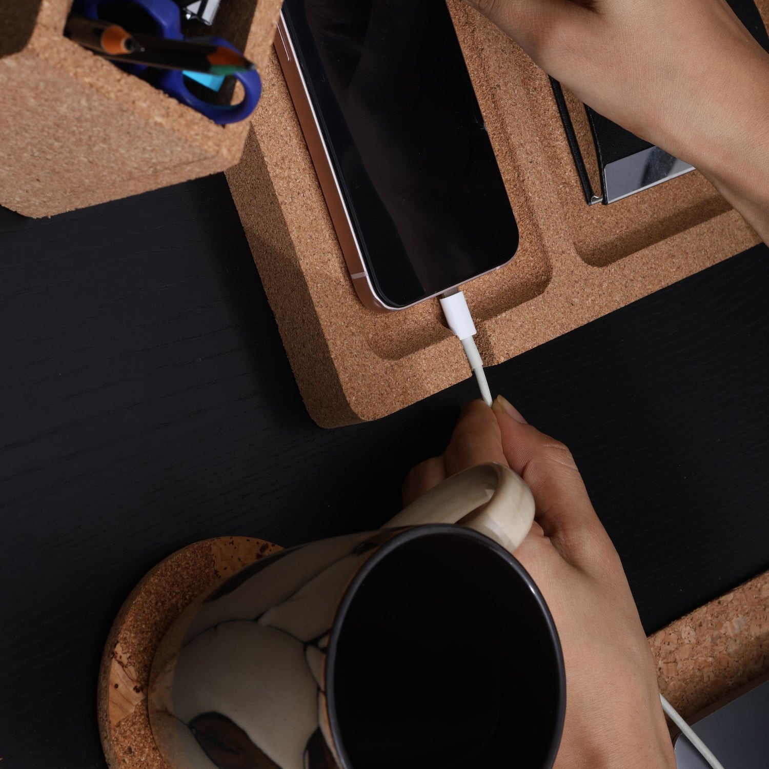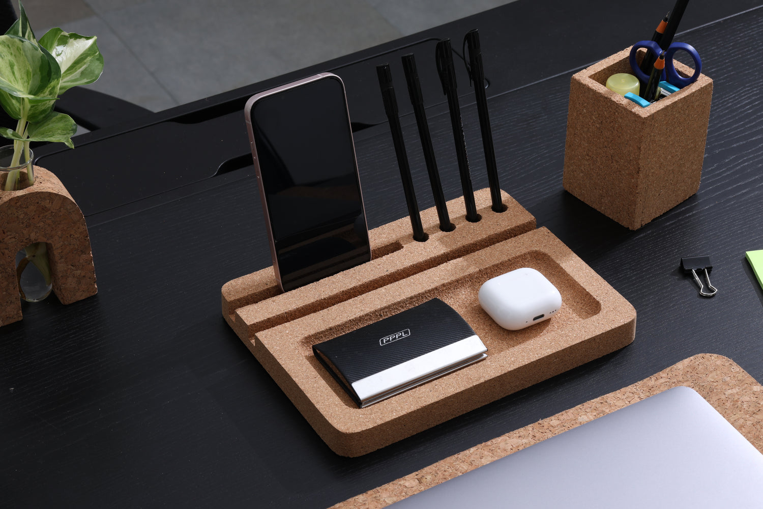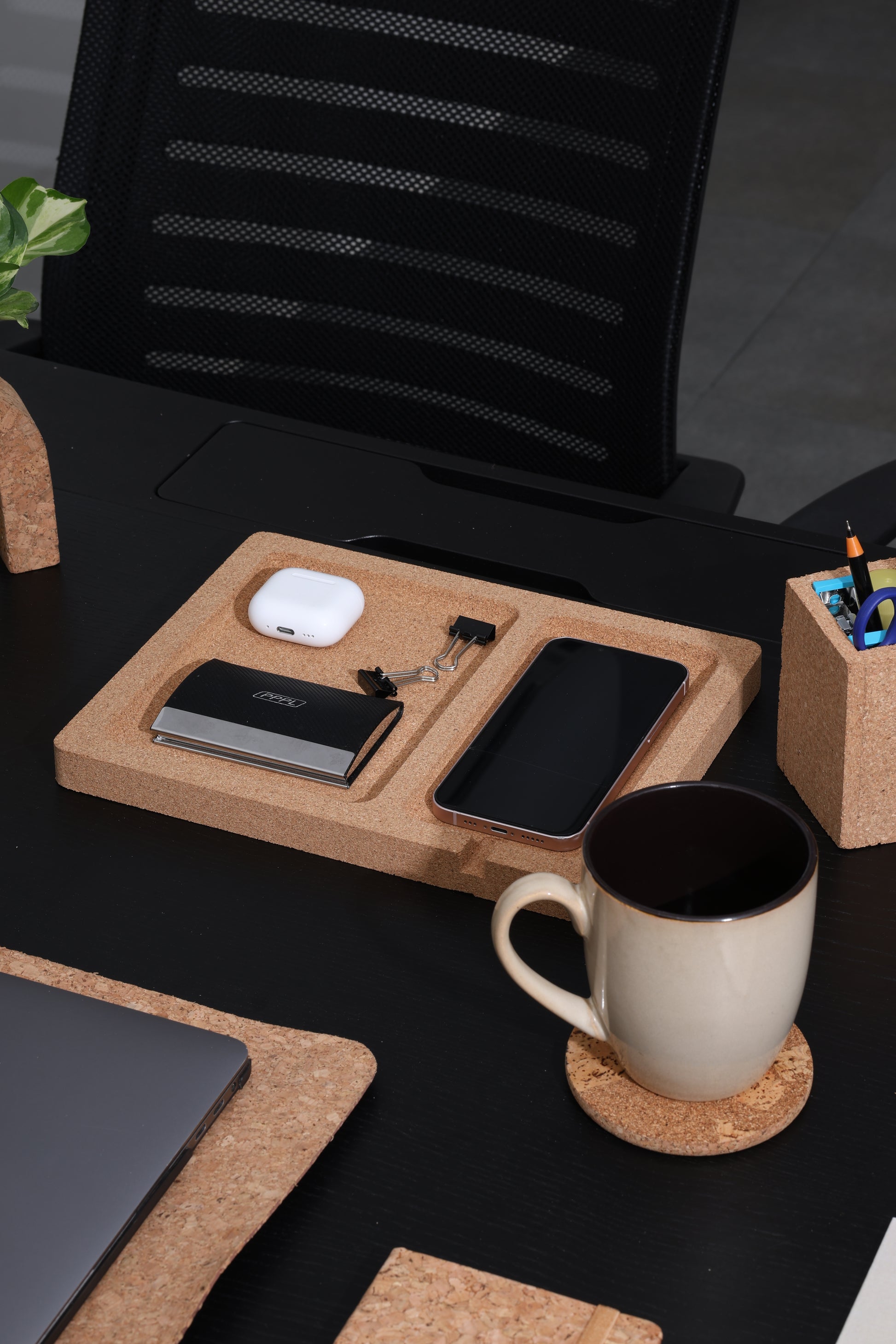 Perfect for desks, study tables, or workstations. Its minimal cork design adds a warm, natural touch while keeping everything within easy reach.