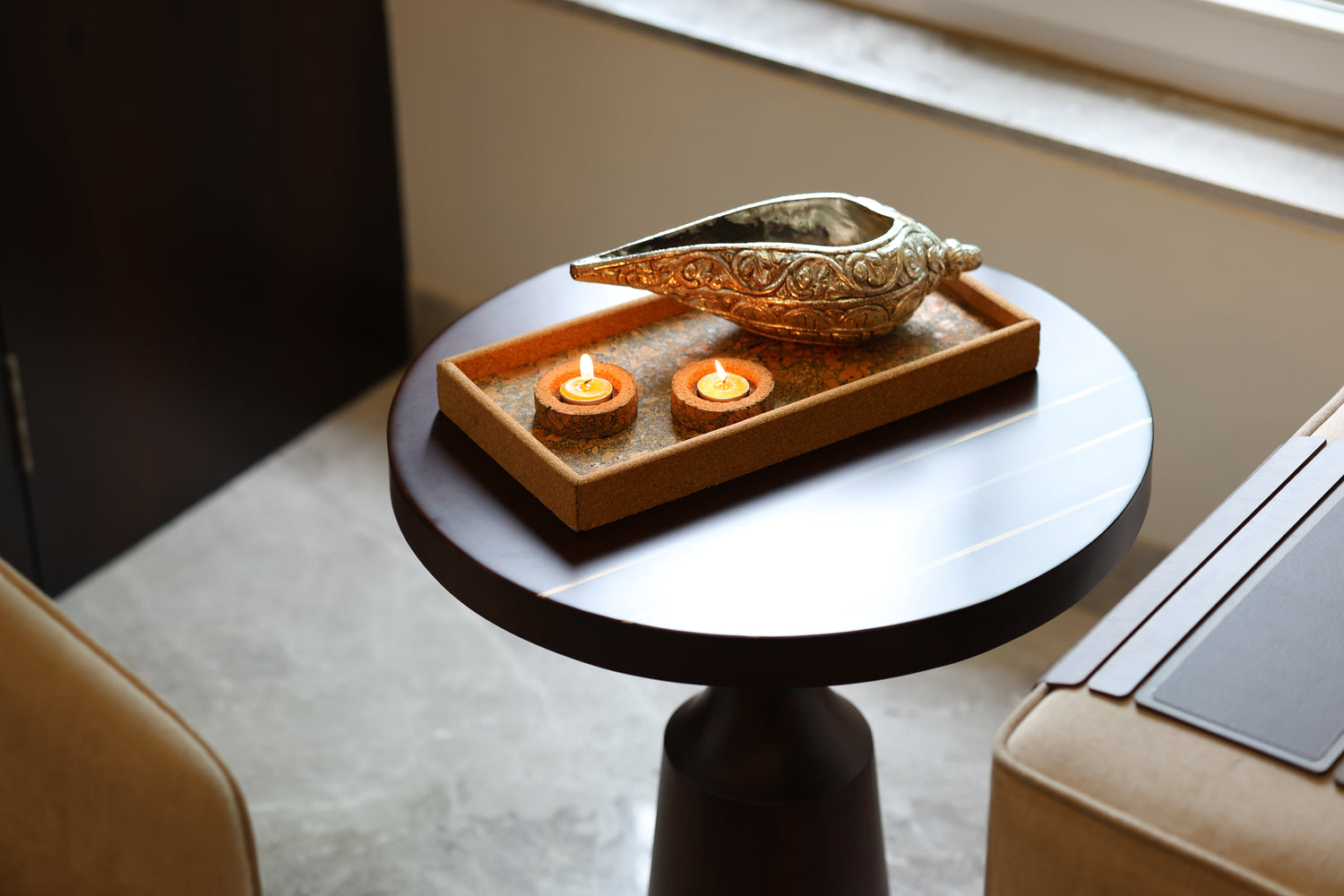 Perfect for Diwali, pujas, and festive décor, this tealight holder spreads a serene, golden radiance. The natural cork blends beautifully with traditional setups, bringing warmth and peace to your celebrations.